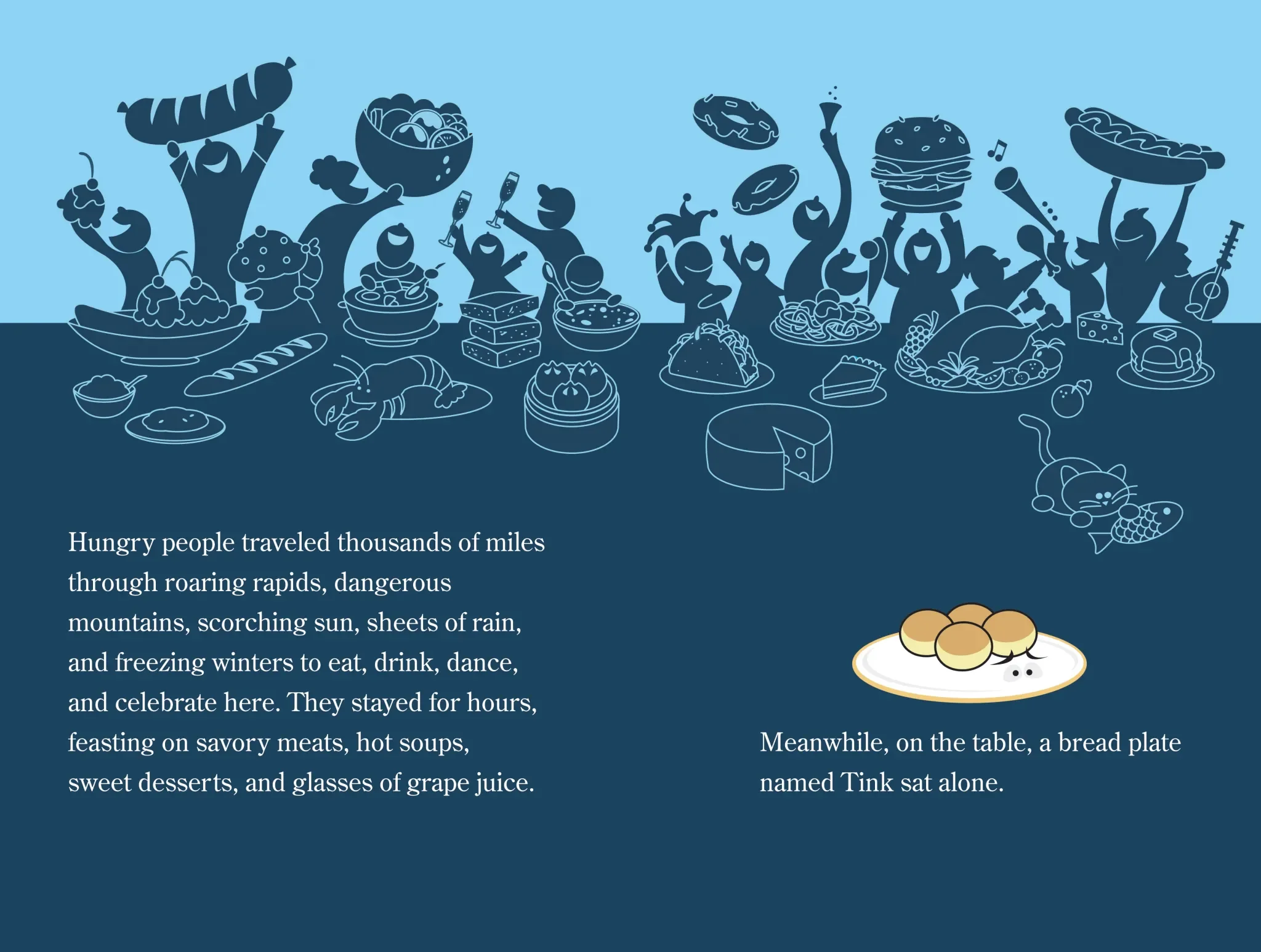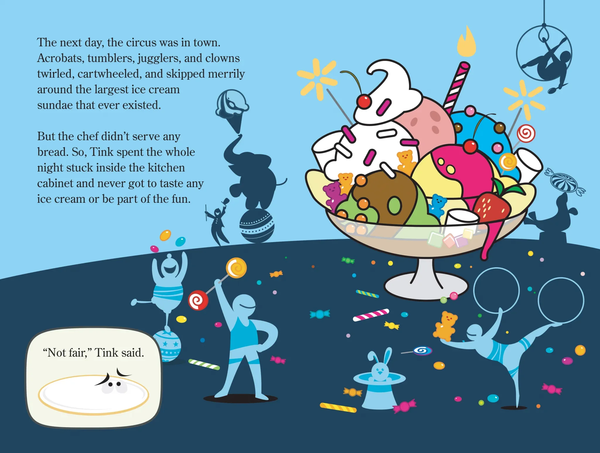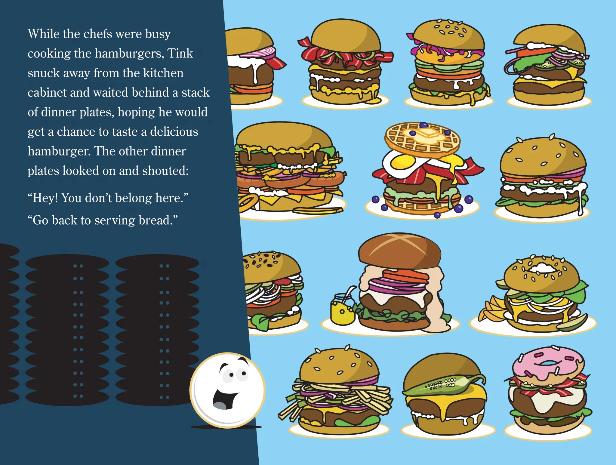 This story is about a bread plate named Tink. While all the other restaurant plates and utensils eat delicious food, Tink only gets to taste bread, which makes him feel inadequate. Follow along as Tink tries to overcome being a bread plate and how an unexpected friendship with a little girl teaches him that friendship is more important than the things he was chasing.